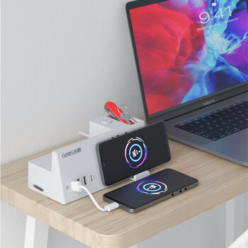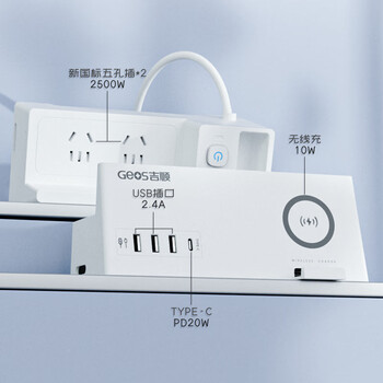 吉顺桌面插座无线充电器3.4A快充USB+20Wtype-c接口排插线板接线板插线板延长线新国标