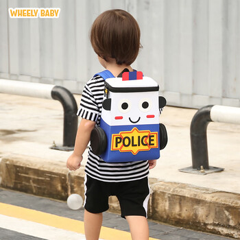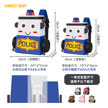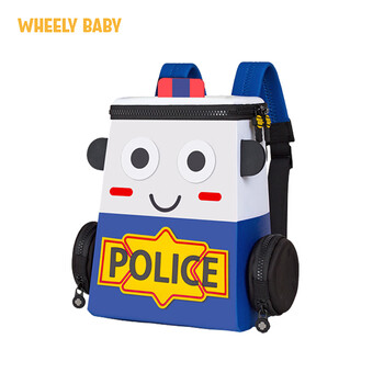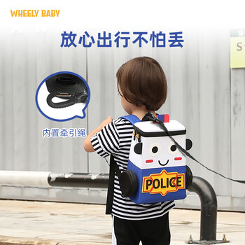 WHEELY BABY幼儿园书包儿童背包小汽车3-6岁男孩女生日礼物警车轻双肩包大蓝