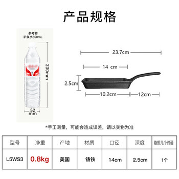 LODGE【美国进口】14CM平底锅不易粘锅铸铁锅玉子烧锅方形煎锅L5WS3