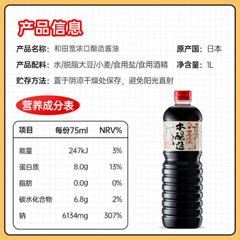 久意本酿造八甲田伏流水和田宽浓口酱油【特级0脂肪】1L凉拌日本进口