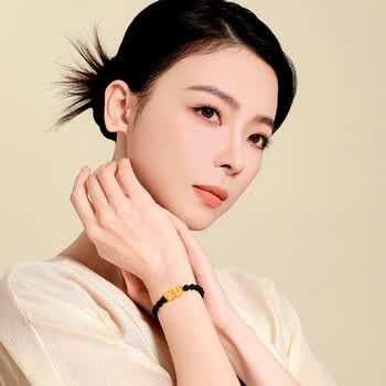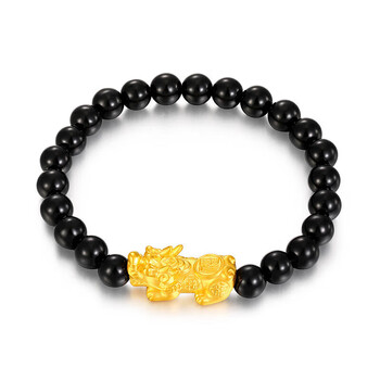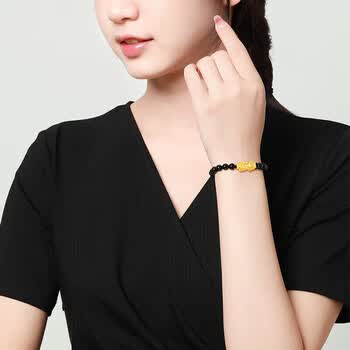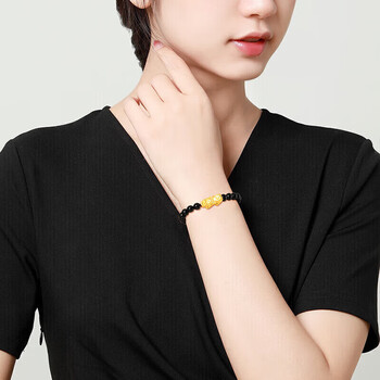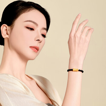 梦金园 七夕礼物黄金貔貅转运珠足金福字瑞兽玛瑙手串女款礼物
