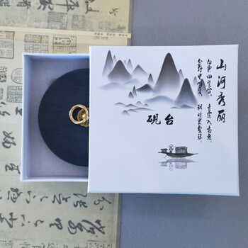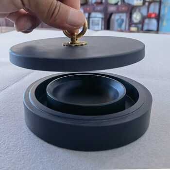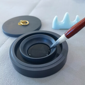 芬尚 5寸火锅砚台 天然原石带盖双圈保湿不干墨砚池 学生毛笔书法国画用(礼盒装)