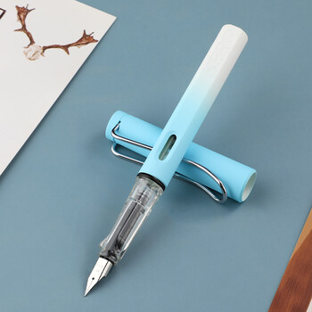 英雄(HERO) 钢笔 359B 明尖铱金男女学生练字三年级正姿签字(附加6支墨囊) EF尖 渐变浅蓝