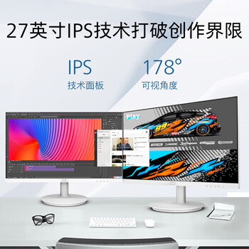 飞利浦(PHILIPS)27英寸 办公显示器 IPS 高清 75Hz 低蓝光护眼 高色域 HDMI+VGA+DP 网课电脑显示屏 白色 272S9W