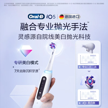欧乐B德国进口智能电动牙刷iO5实力美白刷粉色刷头*1颠覆声波深度清洁热卖榜情侣送礼送男友送女友礼物