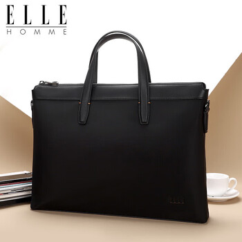 ELLE HOMME 商务男士公文包 尼龙帆布手提包 斜跨14英寸电脑包14610黑色