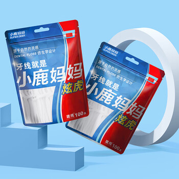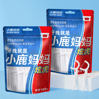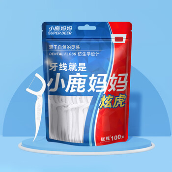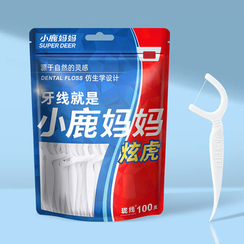 小鹿妈妈细滑圆线牙线棒100支*5袋 清洁齿缝牙签牙线棒便携随身盒