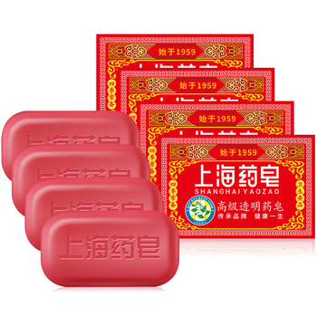 上海药皂香皂肥皂高级透明药皂祛痘止痒控油去异味洗澡沐浴洗手去污130g*4