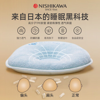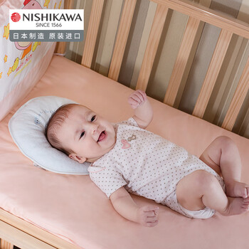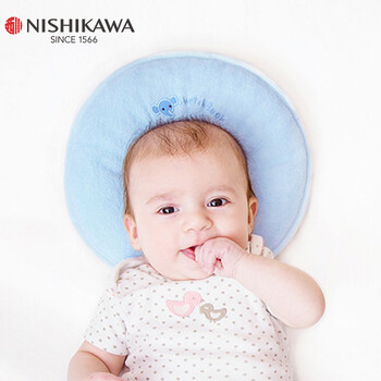 西川NISHIKAWA全棉可水洗软管枕芯超透气定型枕婴儿枕头0-3-6个月以上0-1-2岁新生儿宝宝枕 蓝色中号