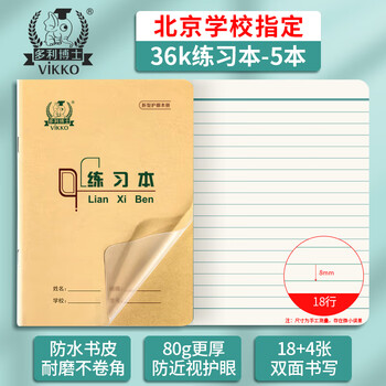 多利博士 36k练习本18行 防水书皮单线本幼儿园小学生初中作业本厚软抄本横线笔记本18页5本【开学必备】