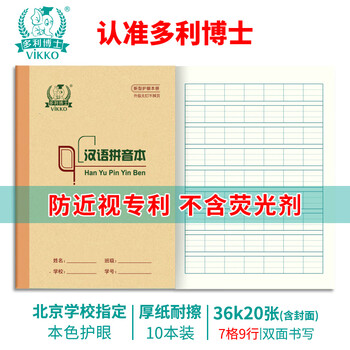 多利博士10本 36K20张小学生汉语拼音本写字簿大格字母拼音练习册小学幼儿园北京统一作业本【开学必备】