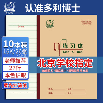 多利博士10本 练习本16k26张作业本小学3-6年级初中高中生练习册大号笔记本27行【北京指定】