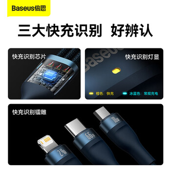 倍思 闪速系列2 一拖三快充数据线USB to M+L+C 66W 1.2m 蓝色*1