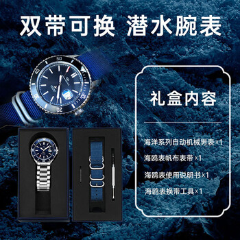 海鸥(SEAGULL)手表男士自动机械表 海洋系列男士手表 生日礼物潜水表 1523套装