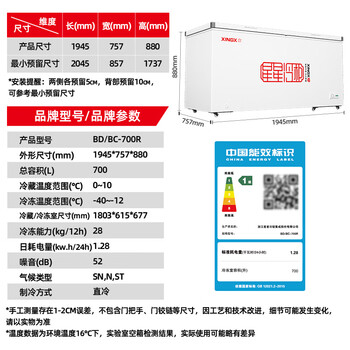 星星(XINGX)700L商用冰柜冷柜 大容量冰箱冷藏冷冻保鲜节能顶开柜 减霜单箱卧式冷柜 BD/BC-700R
