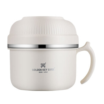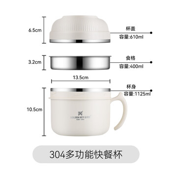 金钥匙(GOLDEN KEY)304不锈钢 14cm多功能快餐杯学生饭盒便当盒双层隔热GK-R140T-W