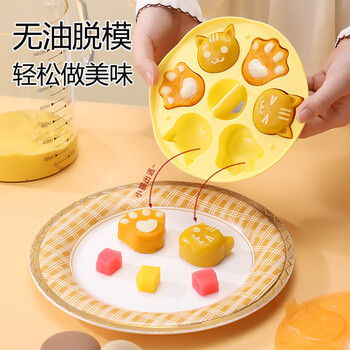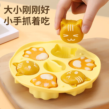 licheers辅食蒸糕模具婴儿宝宝辅食工具家用DIY硅胶冷冻耐高温磨具 猫爪黄