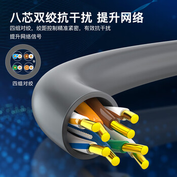 秋叶原(CHOSEAL)原装超五类网线【工程版】CAT5e纯铜线芯综合布线POE供电非屏蔽网络线灰色305米QS2608AT305S