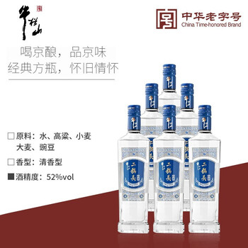 牛栏山 白酒 清香型 京酿 52度 1000ml*6瓶 整箱装