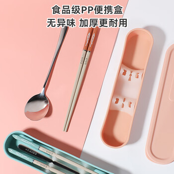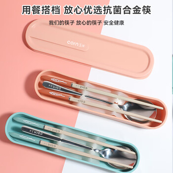 玉米(CORN)便携餐具儿童筷子勺子套装小学生外出一人用合金筷勺三件套收纳盒