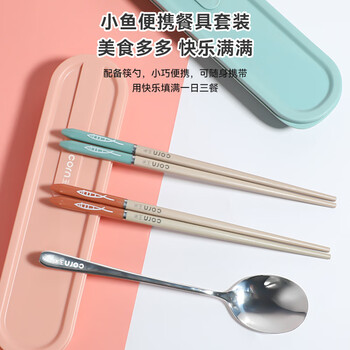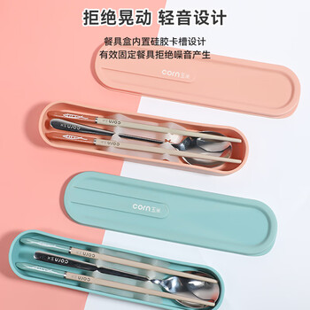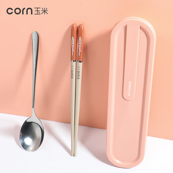 玉米(CORN)便携餐具儿童筷子勺子套装小学生外出合金筷勺三件套收纳盒