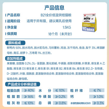BOTH-B21全价低温烘焙全期猫粮鲜鸭肉梨配方(泪痕管理)1.5kg*1