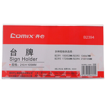 齐心(COMIX)(Comix)桌面展示卡/桌牌 V型亚克力台卡/台牌 高透明210x105mm 工具 B2394