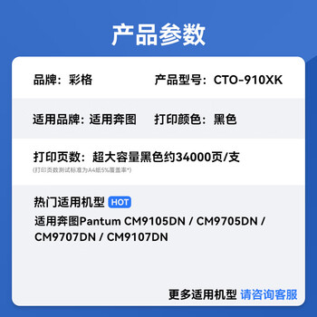 彩格CTO-910XK黑色大容量粉盒适用奔图Pantum CM9105DN彩色打印机硒鼓墨盒CM9705DN粉盒CM9107碳粉盒CM9707墨粉盒