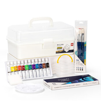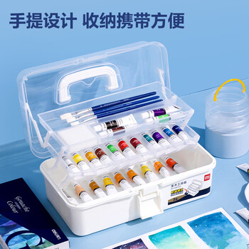 得力HS311-12_水粉颜料工具箱套装12ml*12色(混)(盒)*1