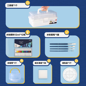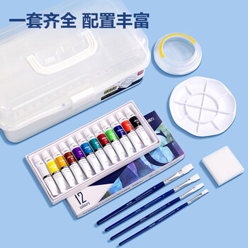 得力水粉颜料12色艺学生考联考色彩课组合绘画彩绘品质颜料套装HS311-12女孩可水洗手搓颜料