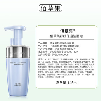 佰草集舒缓保湿洗面奶男女洁面泡沫按压式145ml(氨基酸洁面敏肌适用)