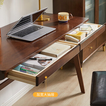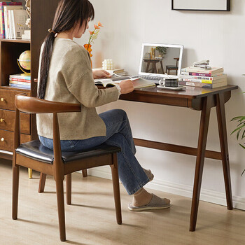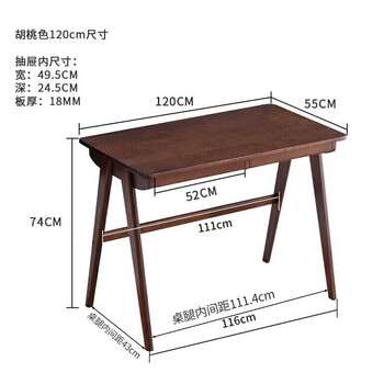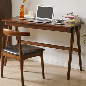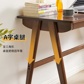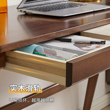 家逸 实木书桌电脑桌书房学习桌学生写字桌简约办公桌子胡桃色1.2米