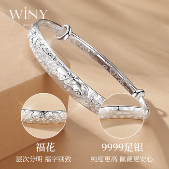 唯一(Winy)银手镯女款足银9999实心镯子老人正品纯银饰品生日礼物送妈妈长辈