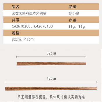 张小泉木筷子捞面筷42cm加长火锅筷家用饭店用油炸筷鸡翅木筷2双装