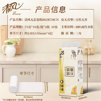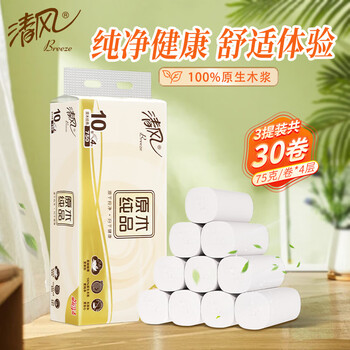 清风无芯卷纸 原木纯品 4层加厚2250克/30卷卫生纸家用厕纸妇婴用纸