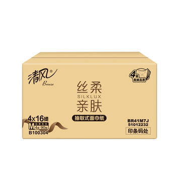清风BR41M7J丝柔金装90抽4层M码餐巾纸面巾纸抽纸整箱16提64包箱装