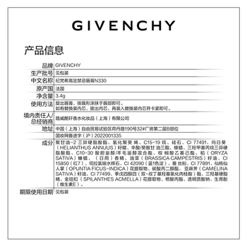 纪梵希(Givenchy)小羊皮N330琥珀玫瑰色口红唇膏顺滑 化妆品 生日礼物送女生送闺蜜