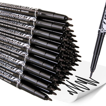 晨光黑色粗细双头物流笔记号笔 油性防水油性 儿童学生勾线笔 会议办公签字笔50支XPMV7408