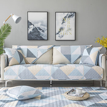 艾薇 沙发垫坐垫四季通用纯棉防滑沙发套罩盖布靠背扶手巾70*70几何蓝
