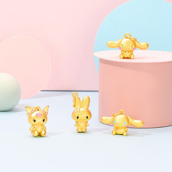 潮宏基三丽鸥足金硬金黄金吊坠女挂坠送女友生日礼物 星星大耳狗