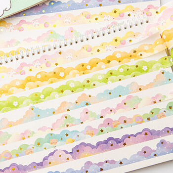 誉禾云朵梦境胶带手账贴纸烫金工艺波浪造景和纸素材异形边框少女心手帐装饰 4卷混装 5234