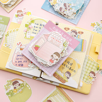 誉禾卡通异形便签纸创意可爱少女手帐拼贴素材纸无粘性装饰纸可书写DIY记事标记纸100张 4232甜蜜时光