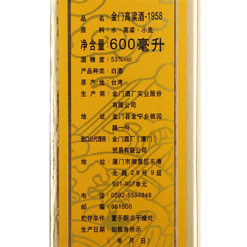 金门高粱 1958珍藏纪念酒 清香型白酒 53度600ml 单瓶装 宴请送礼