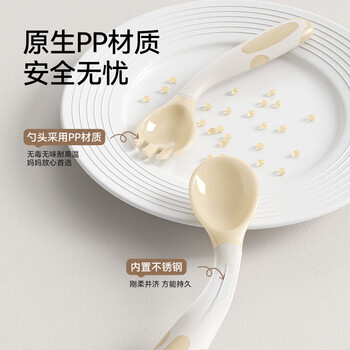 英氏(YEEHOO)温感叉勺宝宝学吃饭训练勺子婴儿辅食勺弯曲儿童餐具 奶咖色