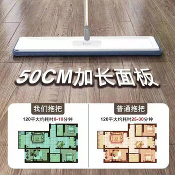 侑家良品平板拖把50CM杆长135CM共3布家用一拖净免手洗带桶洗衣机拖把套装