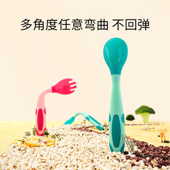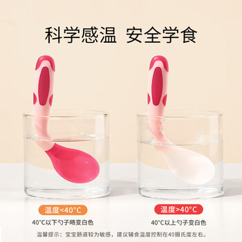 英氏(YEEHOO)温感叉勺宝宝学吃饭训练勺子婴儿辅食勺弯曲儿童餐具 梅花红