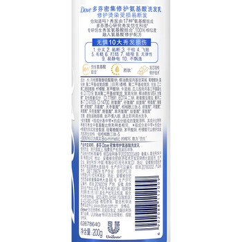 多芬密集修护氨基酸洗发水200g 自营正品洗头膏 针对染烫受损易断发