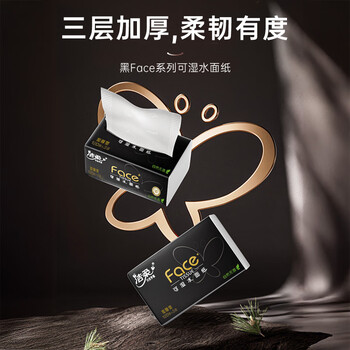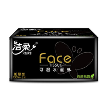 洁柔抽纸 黑Face可湿水3层130抽*8包 柔软亲肤 柔韧面巾纸(新老品交替发货)