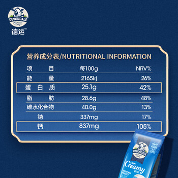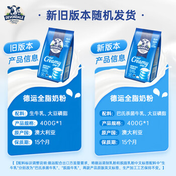 德运(Devondale)全脂成人奶粉400g袋装调制乳粉学生高钙高蛋白澳洲原装进口早餐