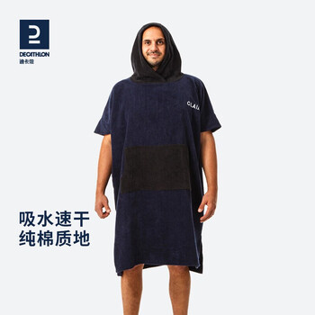 迪卡侬纯棉斗篷加厚带帽沙滩巾SBT深藏青色均码-2690644